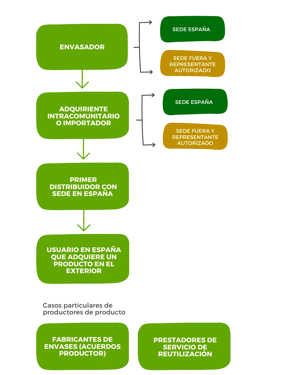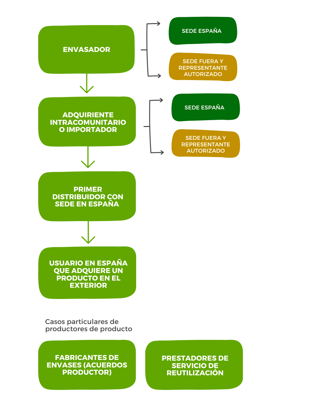 Son los envasadores o los agentes económicos dedicados a la importación o adquisición en otros Estados miembros de la Unión Europea de productos envasados para su puesta en el mercado.