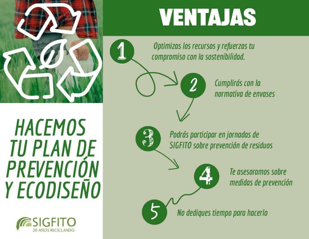 SIGFITO, el SCRAP líder en el sector agropecuario, siguiendo su compromiso con la sostenibilidad y la gestión responsable de envases, ofrece a los productores de producto su servicio de Planes de Prevención y Ecodiseño. Este programa está diseñado específicamente para ayudar a las empresas a cumplir con la legalidad y optimizar sus recursos.