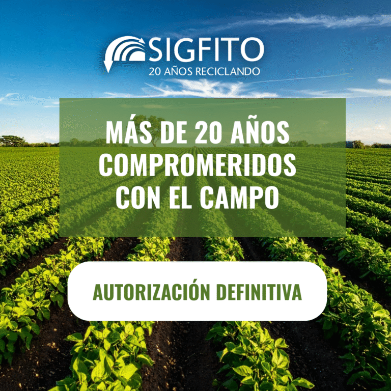 En SIGFITO celebramos la concesión de la autorización definitiva que nos permite seguir desempeñando nuestra labor como Sistema Colectivo de Responsabilidad Ampliada del Productor (SCRAP) para la gestión de los envases comerciales e industriales del ámbito agropecuario, consolidando más de 20 años de compromiso con el medio ambiente y con el sector agrario y reafirmando nuestra misión de ofrecer un servicio integral, transparente y sostenible.